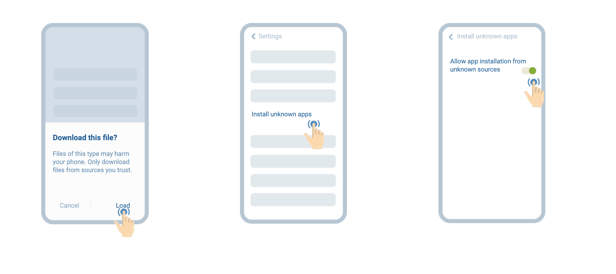 - Ismeretlen források: Győződjön meg arról, hogy engedélyezte az „Ismeretlen források” opciót az eszköz beállításaiban. Enélkül az Android nem engedélyezi a Google Play Áruházon kívüli forrásokból származó alkalmazások telepítését.